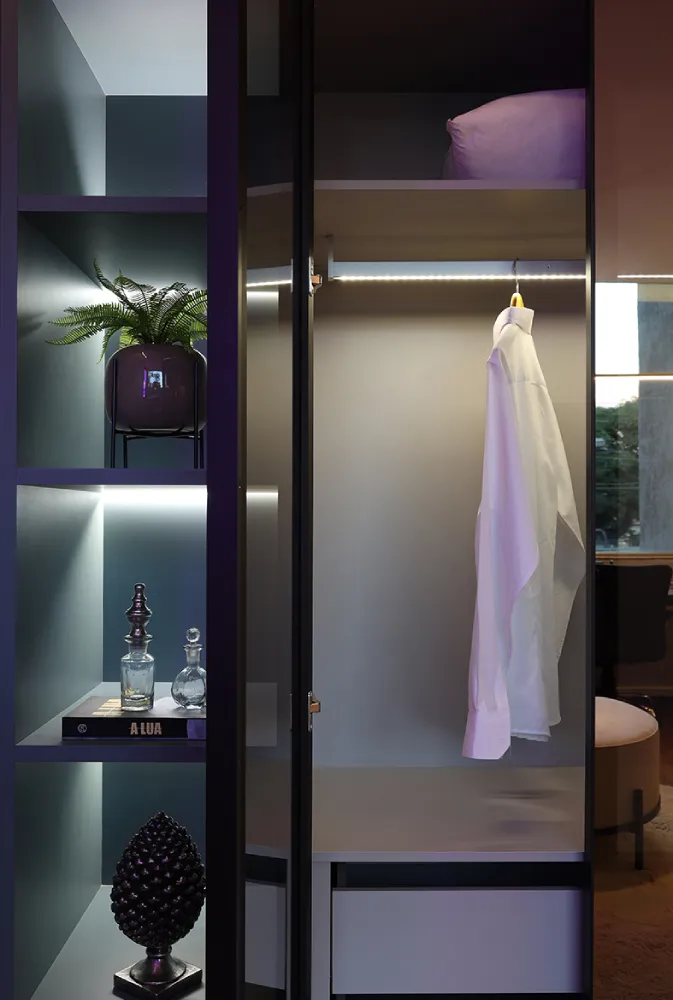Móveis planejados podem incluir armários compactos que oferecem armazenamento sem ocupar muito espaço.